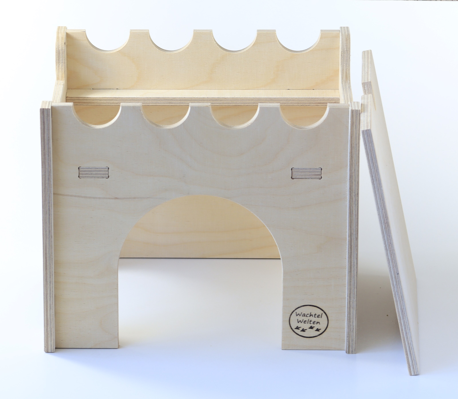 Das Nest ist großzügig gestaltet und verfügt über praktische Seiteneingänge, die den Wachteln ein Gefühl von Sicherheit und Rückzug vermitteln. Jede Öffnung und jedes Maß wurde mit Sorgfalt gewählt, um artgerechtes Verhalten zu fördern – basierend auf jahrzehntelanger Praxis in der Haltung von Legewachteln.