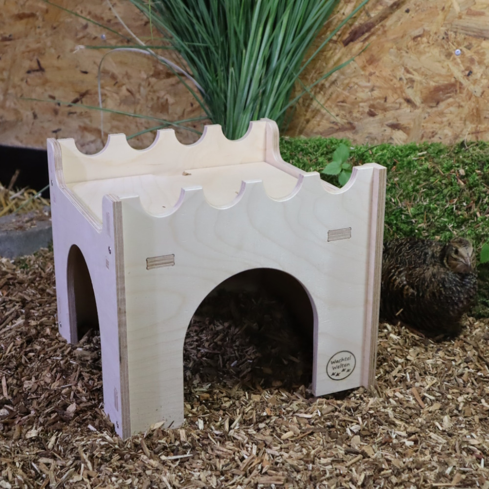 Im ehrwürdigen Legenest „Turm Federflausch“ finden Ihre Wachteln einen geschützten, gemütlichen Ort, der ganz im Stil vergangener Burgzeiten gestaltet ist. Ob zum Ausruhen oder Eierlegen – dieses Nest bietet eine friedvolle Atmosphäre und erfüllt die Bedürfnisse Ihrer Tiere mit viel Herz und Erfahrung.